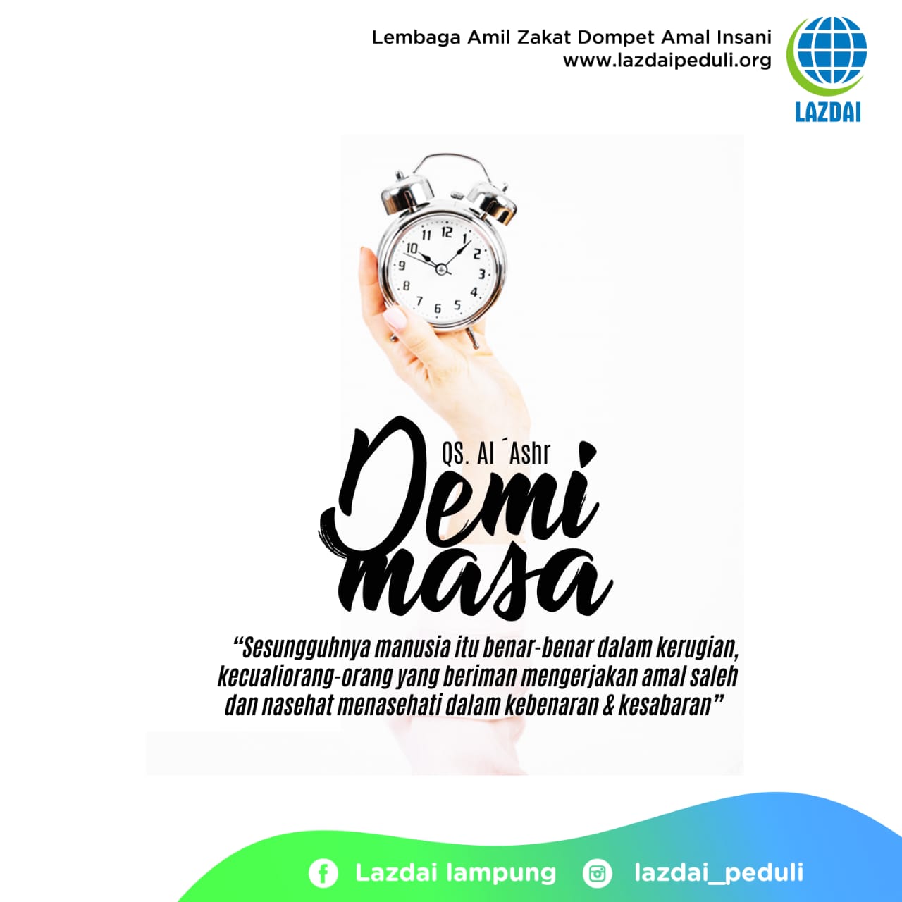 “Demi masa. Sesungguhnya manusia itu benar-benar berada dalam kerugian. Kecuali orang-orang yang beriman dan mengerjakan amal sholih, saling menasihati supaya menaati kebenaran dan saling menasihati supaya tetap di atas kesabaran” (QS. Al-’Ashr [103]: 1-3).